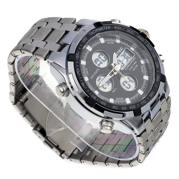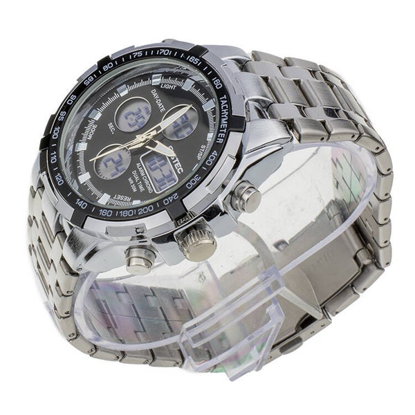 Digitaal Analoog horloge met zwarte wijzerplaat en RVS band